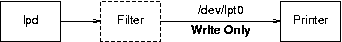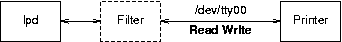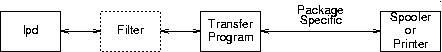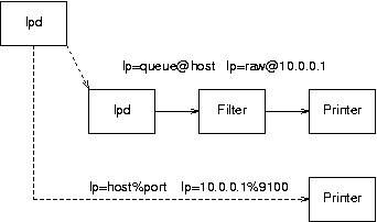 Since the print job may not be in the appropriate format for the ouput device a filter program may be used to prepare the output data or perform special operations on the output device. Alternatively, the print job can be forwarded to another print spooler Figure 1-1, transferred directly to a TCP/IP network port.