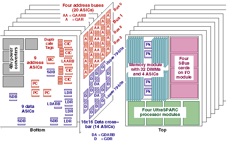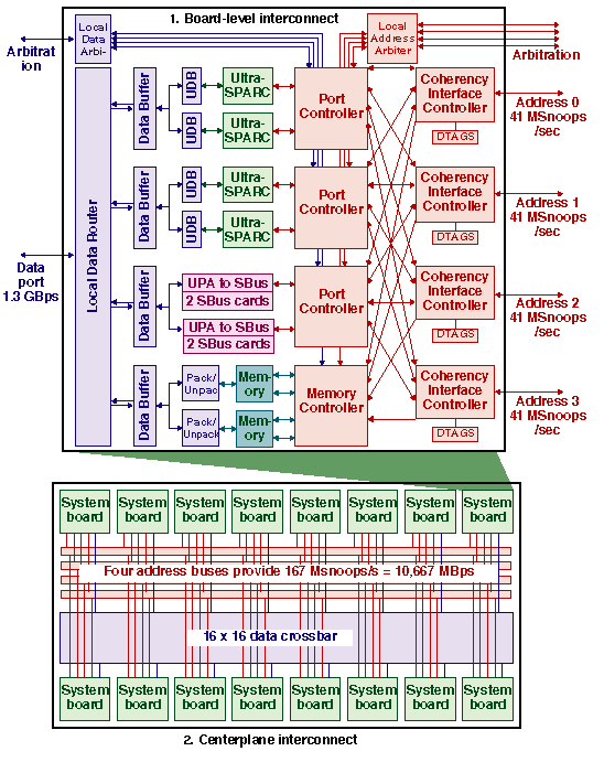 Like most multi-board systems, Starfire has a two-level interconnect, which is shown in Figure 3: