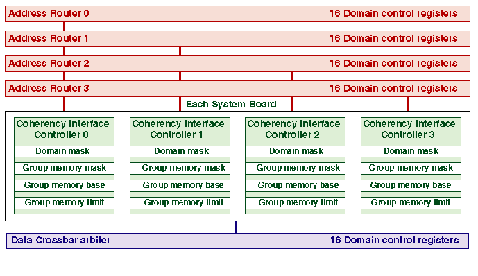 Domain protection is implemented at two levels: on the centerplane arbiters, and in the Coherency Interface Controllers on each board.