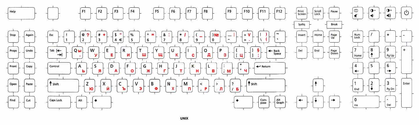 note: BDS stands for Bulgarian National Standard. Keyboard - US/UNIX 320-1234 (Type 5c), 320-1272 (Type 6) and 320-1273 (Type 6 USB) used as template. Bulgarian letters and symbols (in red) are added to this template to form the Bulgarian Keyboard.