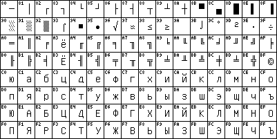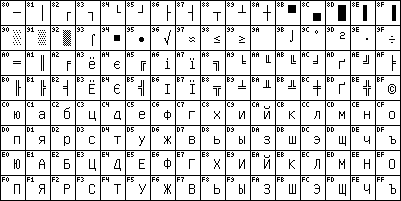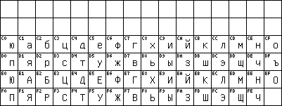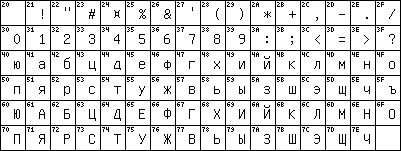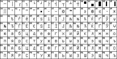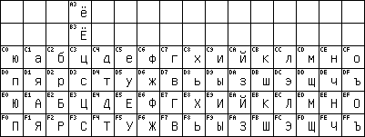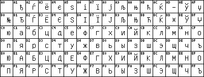 But many font vendors implemented only the letter subset. Let us call it KOI8-B, this extended (bolshee) KOI-8 base containing the letters (bukvy) common (basa) to all modern variants of KOI-8: