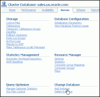 You can use Enterprise Manager to add an instance to your cluster database. You must first configured the new node to be a part of the cluster and installed the software on the new node.