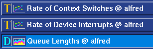 Each performance metric can be displayed in several display types. Display types are chosen from the option menus to the right of each metric in the main window. Click on the icons below to see examples of each display type: