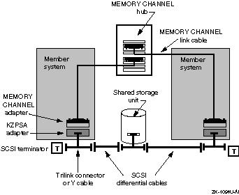 MEMORY CHANNEL hub--A MEMORY CHANNEL hub is required if you have more than two member systems. You can install up to eight line cards in a hub.