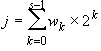 j = (w0 x 20) + (w1 x 21) + (w2 x 22) + (w3 x 23)