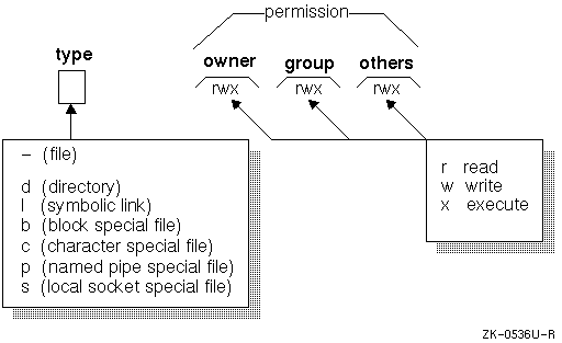 -rw-rw-rw- 1 larry system 101 Jun 5 10:03 file1 $