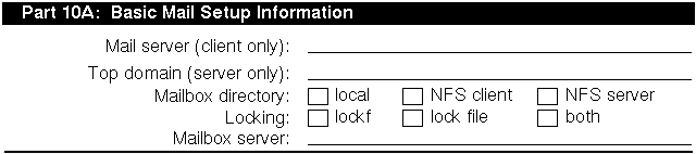 After you install and configure the required protocols and services, you configure mail using Mail Configuration application. Appendix A contains a worksheet that you can use to record the information that you need to complete the tasks in this book. If you are viewing this manual online, you can use the print feature to print a copy of this part of the worksheet.