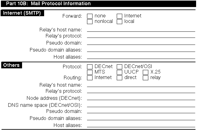 Figure 11-4 shows Part 10B of the Configuration Worksheet. The following sections explain the information you need to record in Part 10A of the worksheet.