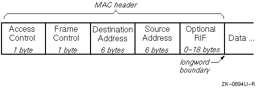 The frame that the driver receives consists of the Media Access Control (MAC) header, which includes the Routing Information Field (RIF) and data. Because the length of the RIF can vary between 0 and 18 bytes, the data after the RIF may not be aligned to a longword boundary. To avoid degraded performance, Digital recommends that you pad the RIF field so that data always starts on a longword boundary.