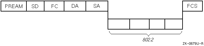 Figure E-4 illustrates the FDDI frame format. The FDDI frame format also contains within it the 802.2 structure illustrated in Figure E-5.