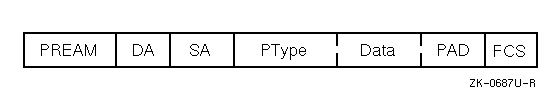 The protocol type (PType in Figure E-2) is a 16-bit value in the Ethernet frame following the source address. The Ethernet driver passes the protocol type to DLI for use in determining the recipient of the data in the frame. With the exception of reserved values, you can use any Ethernet protocol type if it is assigned to you by the manufacturer and not used elsewhere in your system.