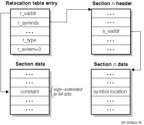 The definition of the section relocation information is similar to UNIX 4.3 BSD, which has local relocation types. Section 7.2.5 provides information on differences between local and external relocation entries.