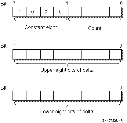 An extended format of the line number entry is used when the delta value is outside the range -7 to 7. Figure 8-7 shows the layout of an extended line number entry on disk.