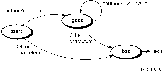 The lexical analyzer that lex generates is a deterministic finite-state automaton. This design provides for a limited number of states that the lexical analyzer can exist in, along with the rules that determine what state the lexical analyzer moves to upon reading and interpreting the next input character.