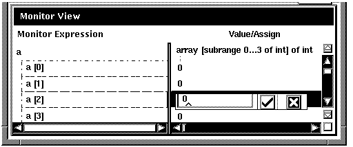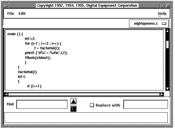 The debugger provides a simple text editor you can use to edit your source files while debugging your program (Figure 4-3).