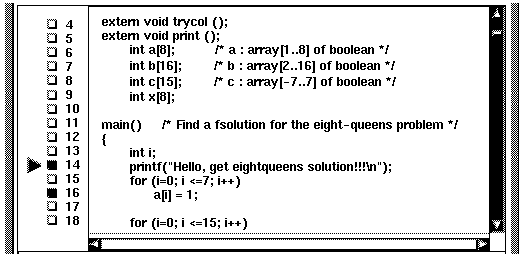 By default, the debugger's Main Window displays the source code of your program (see Figure 4-1).