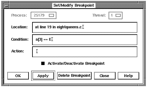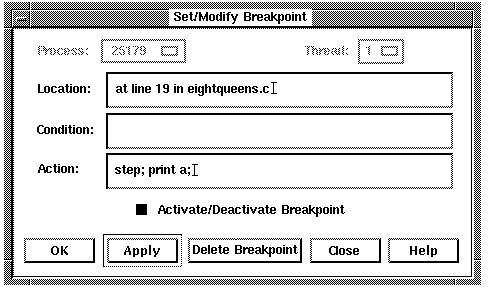 After a breakpoint is set, you can deactivate, activate, or delete it.