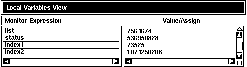 To display the register values associated with any routine on the call stack, choose its name from the Call Stack menu on the Main Window (see Section 4.6.1).