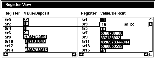 The text edit box is removed and replaced by the new value, indicating that the register now contains that value.