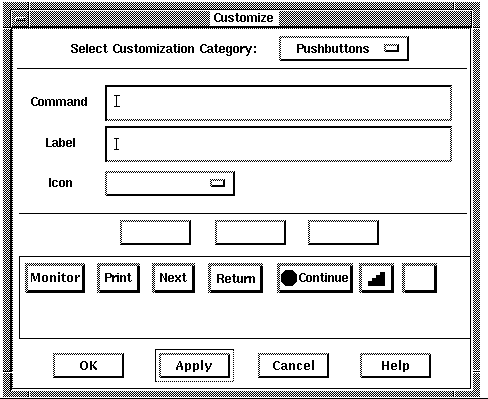 The following sections explain how to customize push buttons interactively through the window interface. You can also customize push buttons by editing the resource file (see Section 4.9.4).