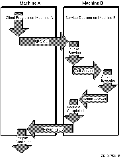 On the server side, a process is dormant -- awaiting the arrival of a call message. When one arrives, the server process computes a reply that it then sends back to the requesting client. After this, the server process becomes dormant again. Figure 1-1 illustrates this basic form of network communication with the remote procedure call.