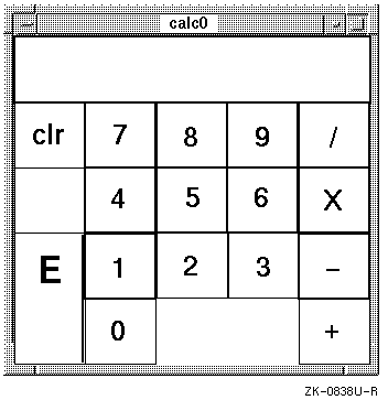 WS includes source listings and makefiles for four related sample programs: calc0, calc1, calc2, and calc3. Each of these sample programs is an implementation of the same application: a desktop calculator. Although all four programs present a similar user interface (shown in Figure 3-3), the source code of each program shows a different approach to XDPS application design.