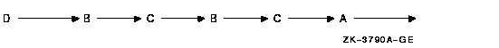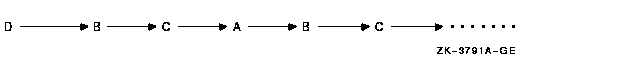 The following figures demonstrate how DECthreads schedules a set of threads on a uniprocessor based on whether each thread has the FIFO, RR, or throughput setting for its scheduling policy attribute. Assume that all waiting threads are ready to execute when the current thread waits or terminates and that no higher-priority thread is awakened while a thread is executing (that is, executing during the flow shown in each figure).