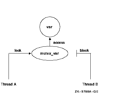For each piece of shared data, all threads accessing that data must use the same mutex: each thread locks the mutex before it accesses the shared data and unlocks the mutex when it is finished accessing that data. If the mutex is locked by another thread, the thread requesting the lock either waits for the mutex to be unlocked or returns, depending on the lock routine called (see Figure 2-4).
