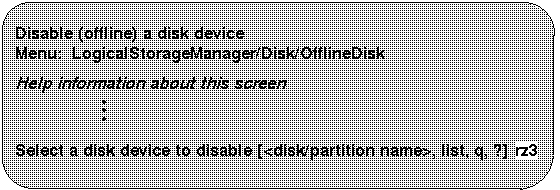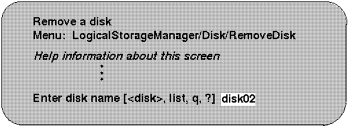| 3 | Removes a disk from LSM. This option does not retain the disk name for future disk replacement. |