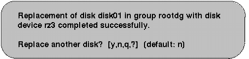You may occasionally need to replace a disk in a disk group. This operation involves initializing the disk for LSM use, and replacing the old disk and associated disk media records with the new disk and its information. Perform the following steps to replace a disk while retaining the disk name: