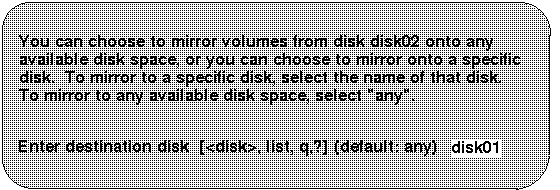 To mirror volumes on a disk, make sure that the target disk has an equal or greater amount of space as the originating disk and then do the following:
