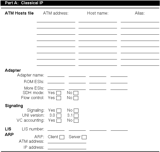 Figure 2-4 shows Part A of the Configuration Worksheet. The following sections explain the information you need to record in Part A of the worksheet. If you are viewing this manual on line, you can use the print feature to print a copy of this part of the worksheet.