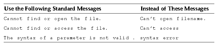 Certain commands have standard errors defined in POSIX.2 documentation. Follow the guidelines set up in POSIX.2, if applicable.