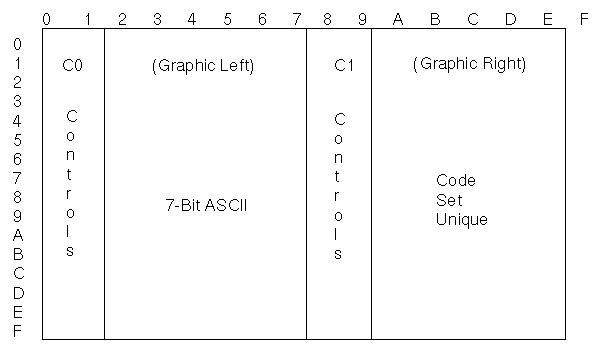 Each code set can be considered to be divided into one or more character sets, such that each character is given a unique coded value. The ISO standard reserves six columns for encoding characters and does not allow graphic characters to be encoded in the control character columns.