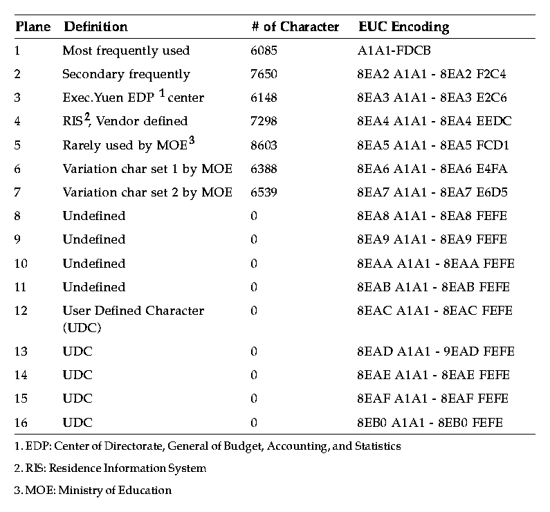 Table 3-5 16 Planes of the CNS 11643-1992 Standard