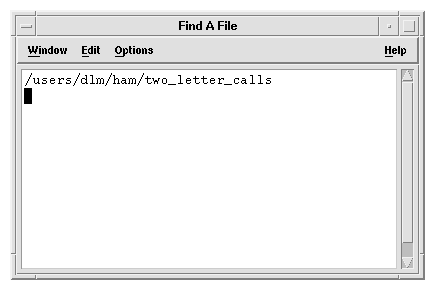 The script's window allows you to specify a search directory and a file name. Other options allow you to place restrictions on the type of file system to search and the file type on which to match. Figure 4-1 shows the script's window.