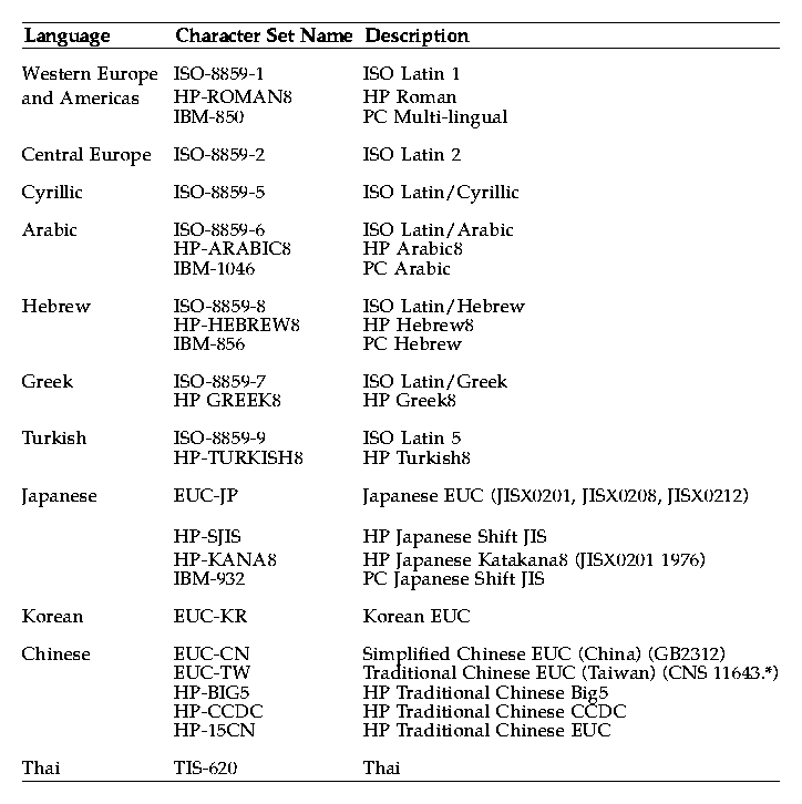 Character sets supported by the Help System are listed in Table 14-1. However, some characters sets may not exist on all platforms.