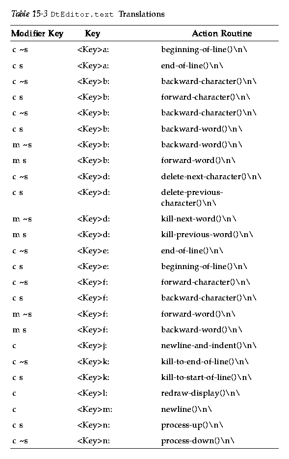 This chapter also describes how to specify style translations for DtEditor widget applications such as the desktop text editor (dtpad) and Mailer (dtmail), and alternates for DtEditor widget application menu accelerators that conflict with these translations.