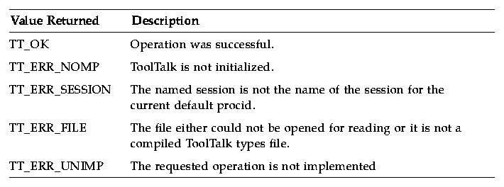 Note: To make the object a permanent ToolTalk item or visible to other processes, the creating process must call tt_spec_write().