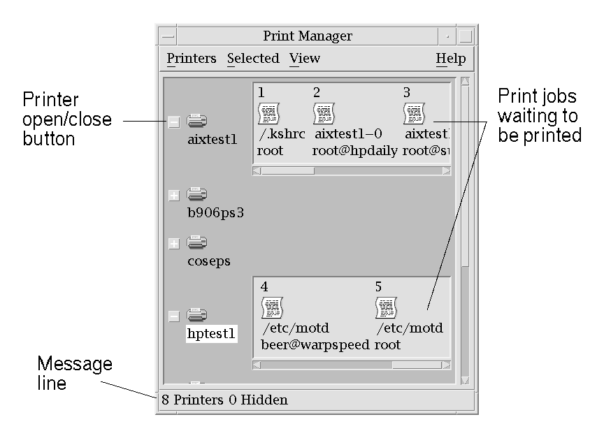 The Print Manager window is shown below. To find out how to modify it, see "Changing the Print Manager Display".